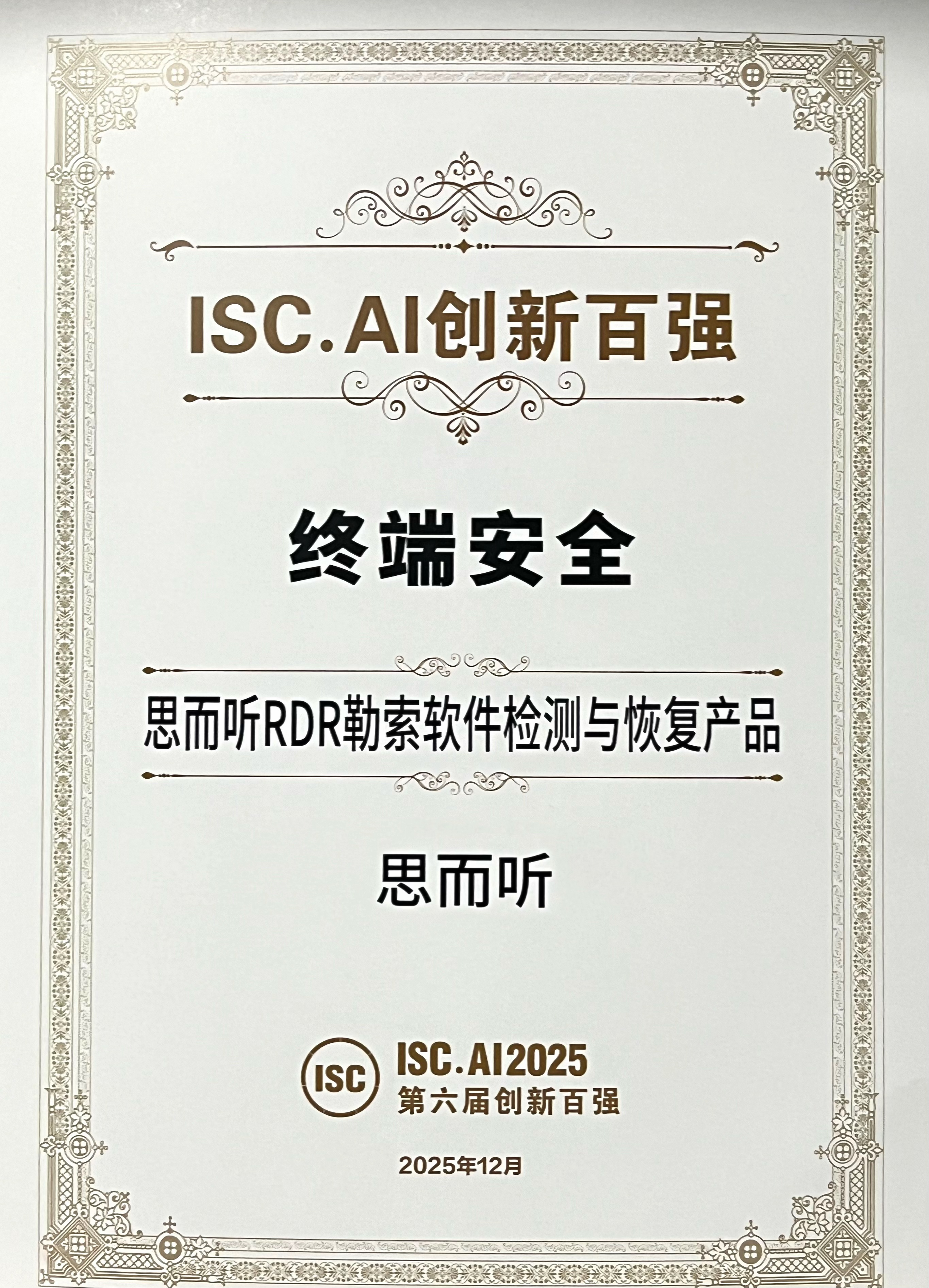 【喜报】思而听荣获ISC·AI 2025 创新百强|终端安全创新力获权威认可